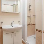 Lägenheten har te/kaffebryggare, kokvrå och mathörna i varje rum. Det finns dusch och bidé i ett badrum.